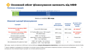У 2026 році Україні потрібно $52 млрд зовнішнього фінансування, і доступ до більшості цих коштів напряму залежить від співпраці з МВФ – саме вона відкриває фінансування ЄС та інших партнерів. Якщо зобов’язання виконуються, потреба повністю покривається. Якщо ні, фінансовий ланцюг розривається: дефіцит перевищує $30 млрд, і коштів вистачить лише травня, а у кращому сценарії, якщо депутати нарешті почнуть голосувати закони Ukraine Facility — до середини літа.