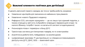 - Детінізація — вищі доходи державного та місцевих бюджетів — сьогодні надважливо, оскільки це про обороноздатність держави;