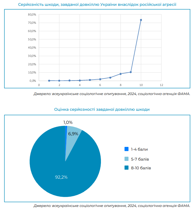Українці розуміють серйозність шкоди, завданої довкіллю України внаслідок російської агресії, проте кошти від компенсації збитків від росії за екологічну шкоду, українці не схильні віддавати на відновлення довкілля.