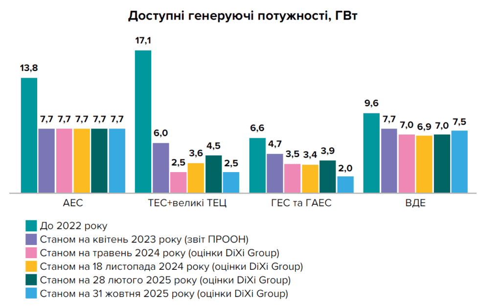 За оцінками DiXi Group, напередодні минулого ОЗП Україна мала в розпорядженні більше 15 ГВт доступної потужності, що дало змогу уникнути масового та регулярного