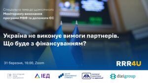 Консорціум RRR4U запрошує вас долучитися до презентації щомісячного Моніторингу виконання умов програми МВФ та Плану України в межах Ukraine Facility.