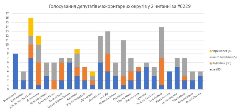 Як свідчить аналіз підсумків голосування від DiXI Group, частина депутатів, обраних по мажоритарних округах у видобувних областях України, а саме: Полтавській, Харківській, Львівській, Івано-Франківській, Сумській областях, – не брали участь у голосуванні за проект закону №6229.
