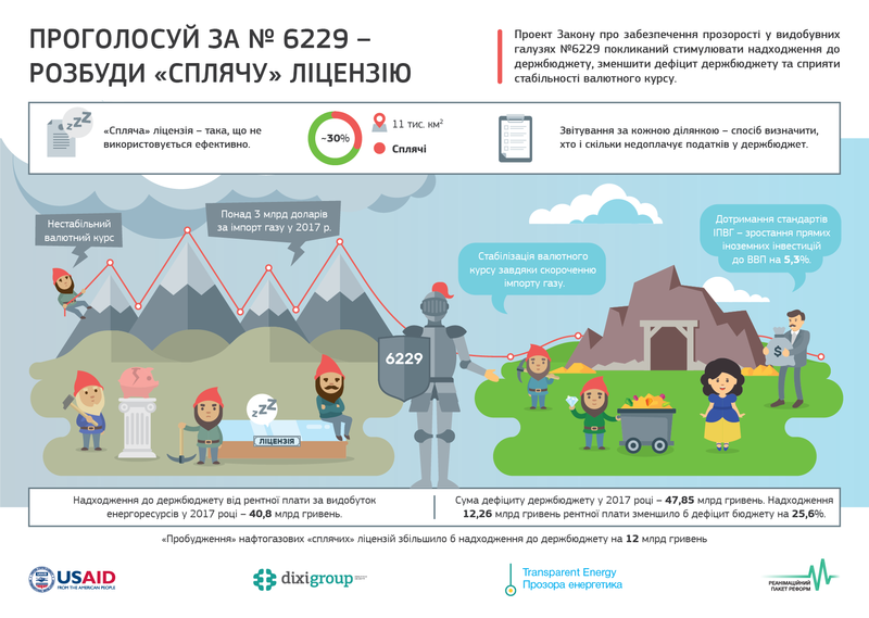 3 липня 2018 року Верховна Рада України відправила на повторне друге читання законопроект № 6229 про забезпечення прозорості у видобувних галузях. Під час першого голосування у залі було тільки 198 голосів “за”, потім нардепи п’ять разів намагалися повернутися до голосування за проект закону, і навіть за повторне друге читання достатня кількість голосів набралася не одразу, а з другої спроби.