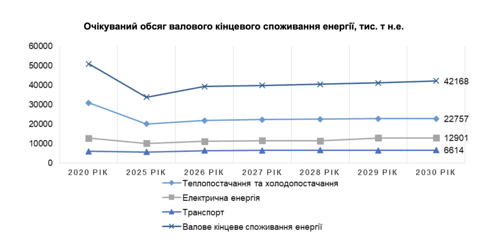 Крім того, відповідно до НПЕК і НПД ВЕ 2030, очікуваний обсяг валового кінцевого споживання енергії в 2030 році становитиме 42 168 тис. т н.е.