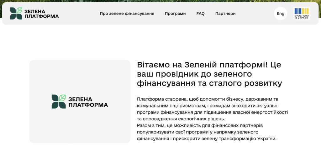 The Green Platform was created by the Ministry of Economy of Ukraine together with the Green Transition Office and the DiXi Group analytical center with support from the International Renaissance Foundation. The project is deployed on the Made in Ukraine portal.