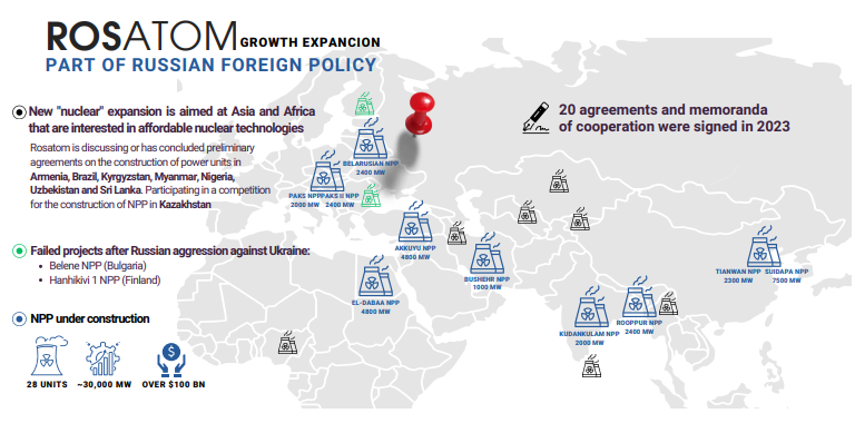 The imposition of sanctions on all companies and organizations that are a part of Rosatom and are not directly involved in the maintenance of existing nuclear power plants or the supply of nuclear fuel should be an important step to stop active expansion of the nuclear giant.