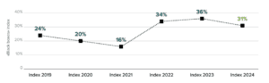 • For more than a third of the 2024 Index indicators (79 out of 233), legislative restrictions on publicity remain in place. In particular, directive prohibition on data disclosure affected 26 indicators (11.2%), and 53 indicators (22.7%) are subject to a discretionary decision by administrators based on the powers granted to them for the period of martial law. Thus, legislative and regulatory factors will be key in restoring the sector’s information transparency after the end of the martial law regime and even during its duration.