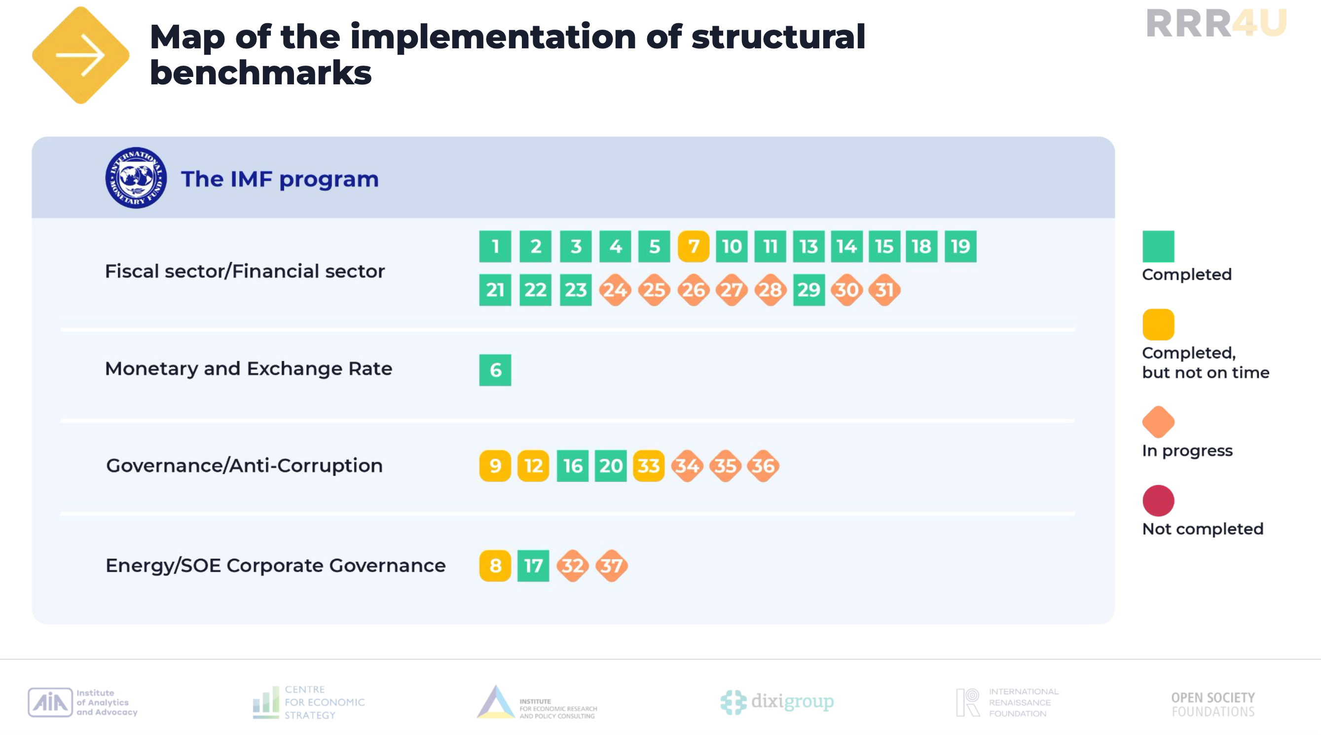 The RRR4U consortium continues to regularly monitor Ukraine’s compliance with the IMF financing program. As Ukraine has fulfilled all structural benchmarks required for a successful fourth review of the Program, an agreement on a successful review was reached at the expert level on May 31. The decision of the IMF Executive Board on the review is expected on June 28.