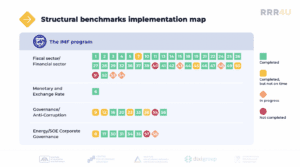The unfulfilled benchmarks include: extending the NBU’s supervision to critical third parties (51), repealing the “Lozovyi amendments” (55), and revising the process of selection and appointment of supervisory board members in state-owned enterprises (57). Ukraine may still complete them with delays (behind schedule).