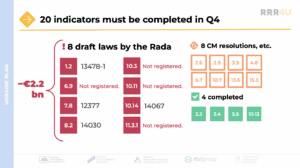 - High risk of failure to meet a number of indicators for the Q4: only 2 months remain for the adoption of a number of draft laws.