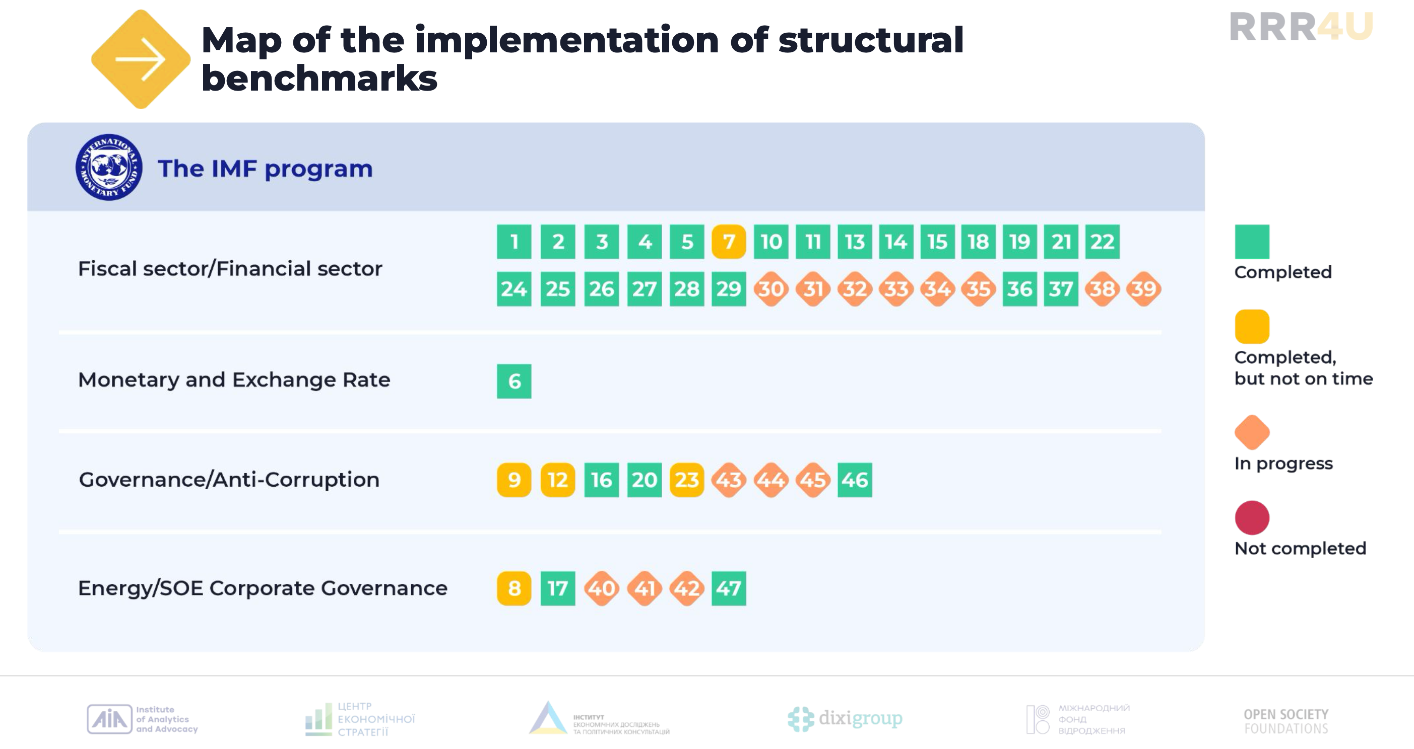 The next sixth review of the IMF programme will take place in December. At that time, our progress will be assessed against quantitative indicators and structural benchmarks with a deadline of the end of September 2024. Ukraine has fulfilled two of the three benchmarks, and the NABU audit has been postponed to February 2025.