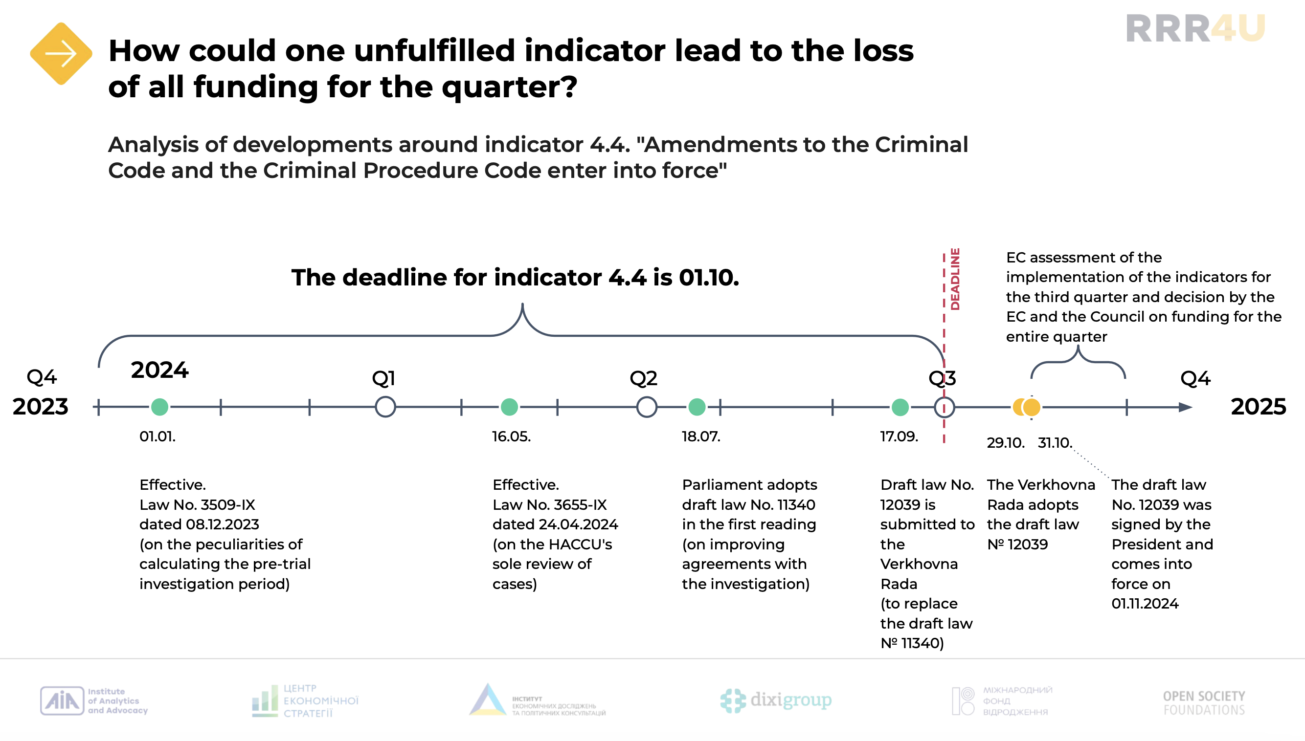 For the first time, there was a risk of not receiving a timely tranche from the EU under the Ukraine Facility: one indicator was met only in October. The absence of a mechanism for disbursing partial tranches delays the entire disbursement.