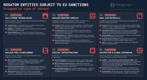 To close this gap, DiXi Group team has prepared specific proposals for designating both legal entities and individuals affiliated with Rosatom for inclusion in EU and partner countries’ sanctions lists — with identifying information, legal grounds, and documented reasons for each entry.