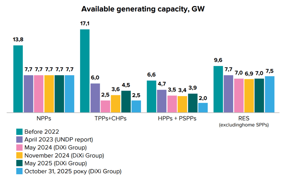 According to DiXi Group’s estimates, on the eve of the previous heating season Ukraine had more than 15 GW of available capacity, which made it possible to avoid the widespread and regular use of hourly power outage schedules.