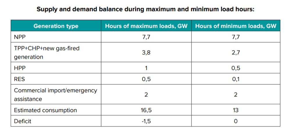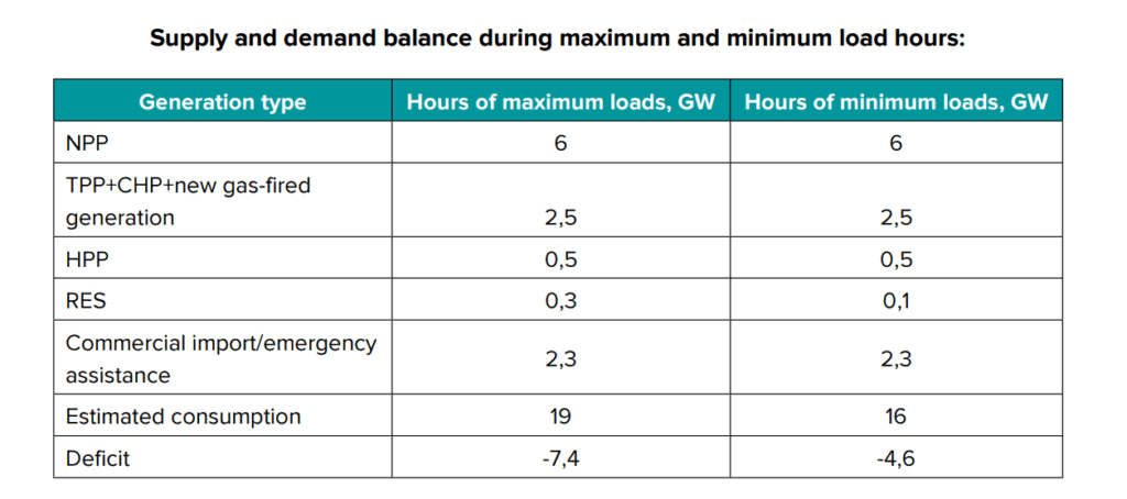 The total available capacity will amount to 15 GW against demand of 16.5 GW, resulting in a 1.5 GW deficit during peak hours. This implies regular outages affecting 1–2 load groups, primarily in the evening, with 3–4 groups applied on an episodic basis. The Loss of Load Probability (LOLP) will stand at 20.5%.