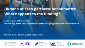 The Centre for Economic Strategy, together with colleagues from the RRR4U consortium, invites you to join the presentation of the monthly monitoring implementation of the IMF programme and EU assistance.
