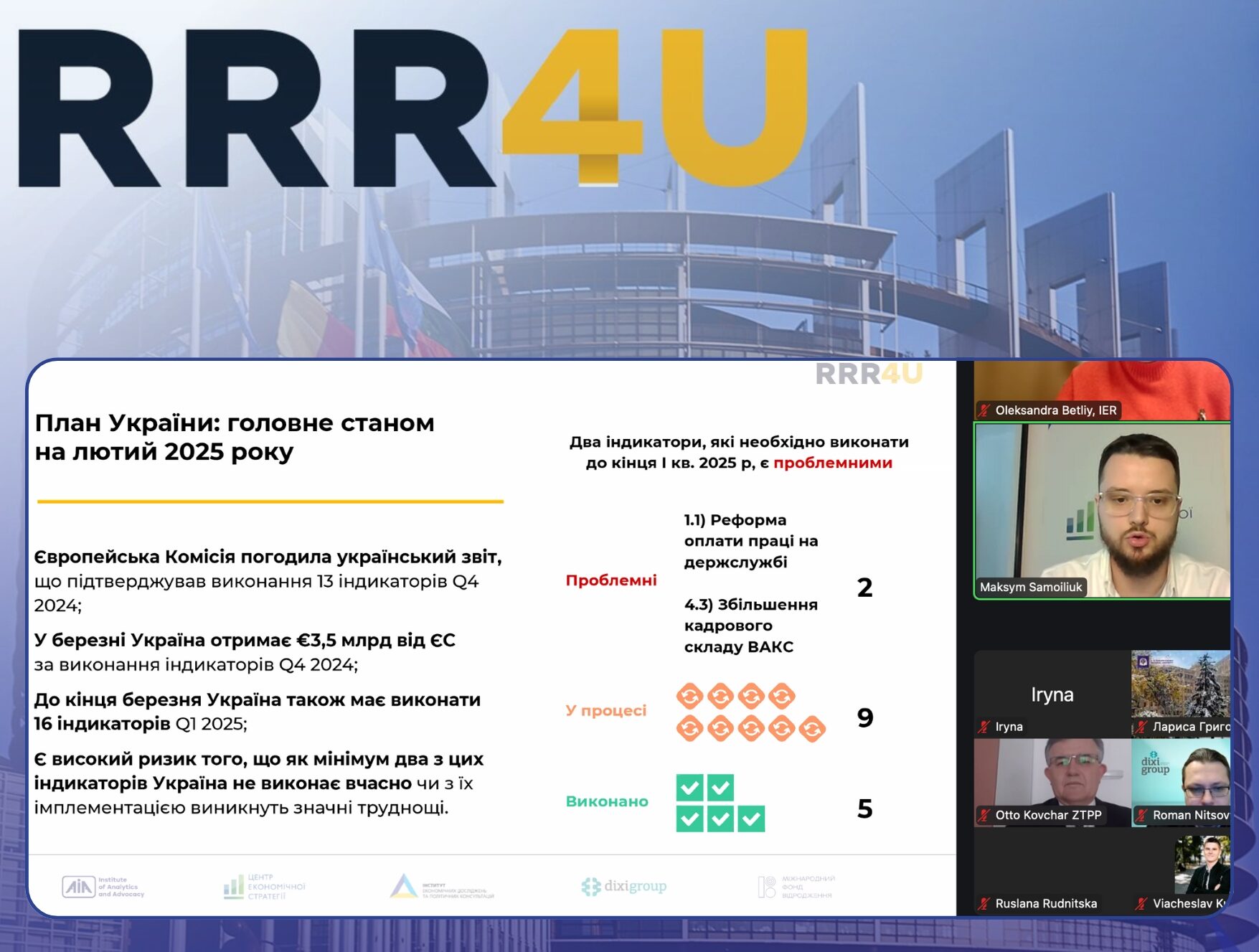 At the same time, by the end of March, we have to fulfil 16 more indicators, 5 of which have already been fulfilled and 9 more are in progress, said Maksym Samoiliuk, economist at the Centre for Economic Strategy.