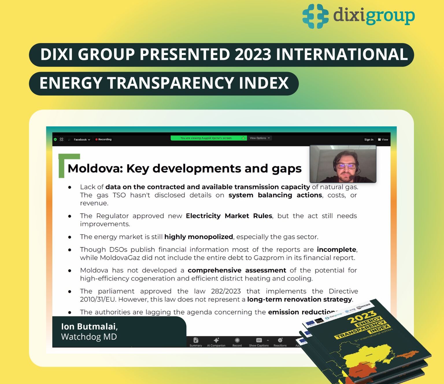 President of DiXi Group, Olena Pavlenko emphasized this during the presentation of the 2023 Energy Transparency Index – 3rd International Edition, which DiXi Group prepared together with World Experience for Georgia and WatchDog.MD Community.