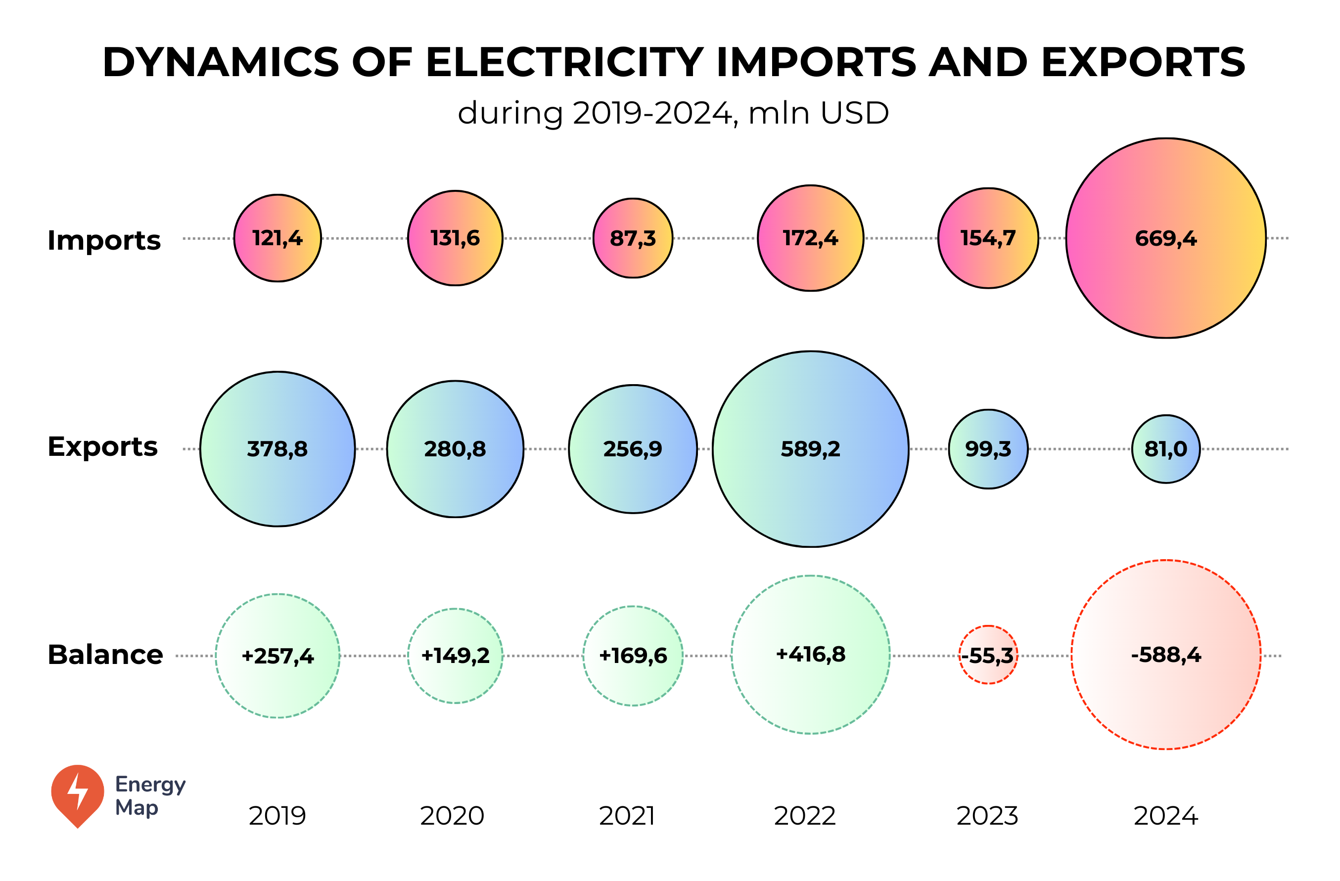 According to the data published on the Energy Map portal, the cost of electricity imports in 2024 amounted to a record $669.4 million, which is $2 million more than the total cost of the previous five years.