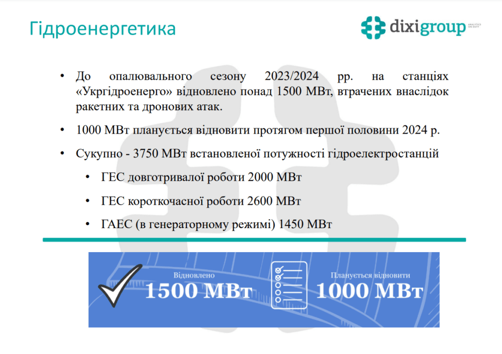 «Можна сказати, що збалансуватися вдалося завдяки гідроелектростанціям, які працювали на повну потужність і забезпечили покриття балансу між попитом і генерацією. Завдяки великій водності по Дніпру й Десні виробництво електричної енергії на ГЕС перевищувало аналогічні показники за більшість років, довоєнного періоду зокрема», – зауважує директор із управління ОЕС України.