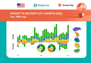 За даними Energy Map, у жовтні 2025 року Україна імпортувала 353,9 тис. МВт·год електроенергії, що у 2,5 раза більше ніж у вересні. Це найвищий місячний показник імпорту з початку року. Водночас експорт скоротився усемеро – до 90,8 тис. МВт·год, що стало першим скороченням за останні п’ять місяців.