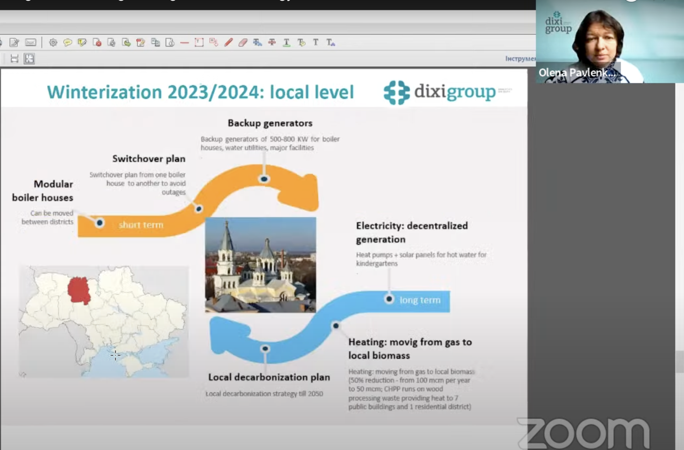 Резюмуючи, експерта зазначила, що попри всі виклики і критичність ситуації, українські міста і громади демонструють готовність будувати стійке енергетичне майбутнє вже зараз та дотримуватися політики декарбонізації сектору. До прикладу, Житомир розробив стратегію декарбонізації до 2050 року, яка передбачає заміщення газу іншими джерелами енергії.
