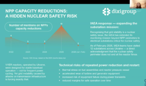 Зокрема у доповіді DiXi Group йшлося про те, як стан енергосистеми впливає на безпеку атомних електростанцій.