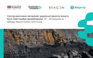 DiXi Group разом з Beacon Events провели спільний вебінар присвячений темі критичним мінералам, модератором якого була президентка DiXi Group Олена Павленко. Захід фокусувався на тому, як зробити українські проєкти інвестиційно привабливими. До дискусії долучилися урядовці, представники міжнародних фінансових інституцій, інвестиційних і видобувних компаній, галузевих об’єднань і незалежних дослідницьких організацій.