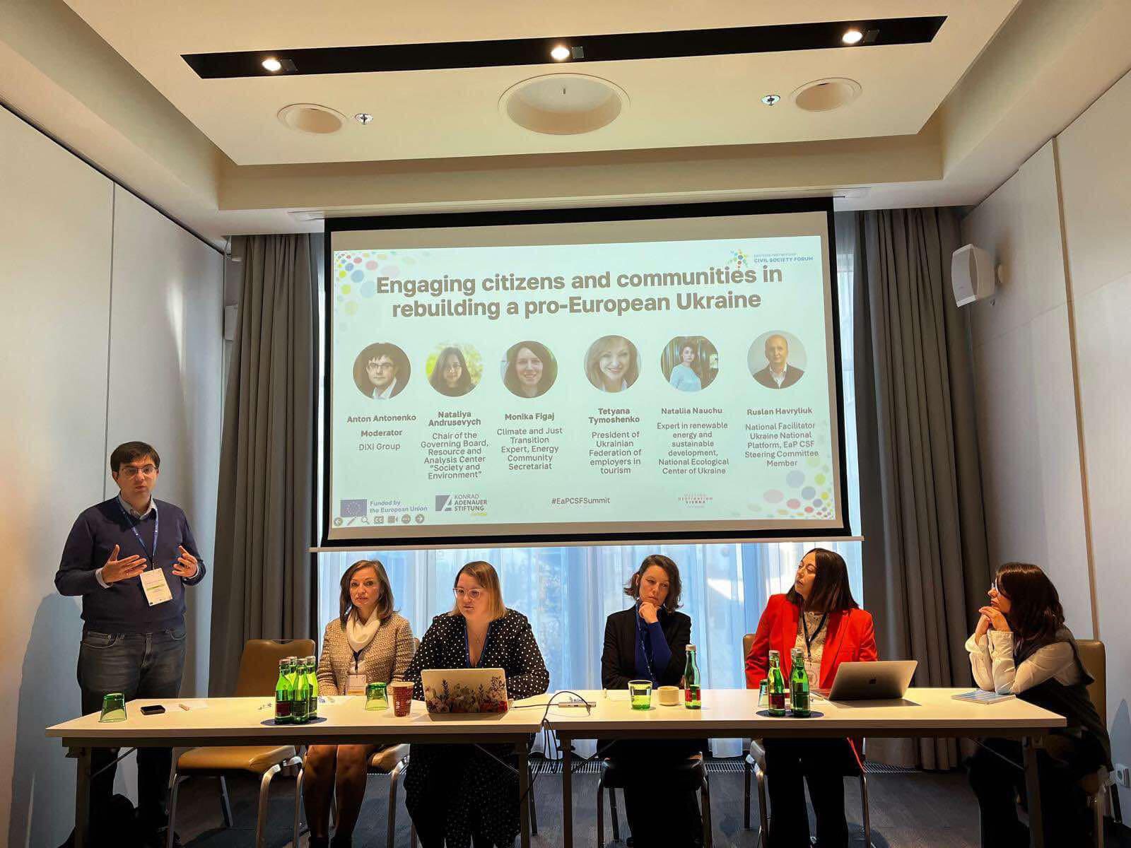 Під час іншої панелі – «Залучення громадян та громад до відбудови проєвропейської України», присутні обговорили роль громадян та громад в процесі реформування України, виклики щодо їх ефективного залучення до цих процесів, а також можливості політики Східного партнерства у залученні громад як основних зацікавлених сторін до процесу європейської інтеграції та повоєнного відновлення України.